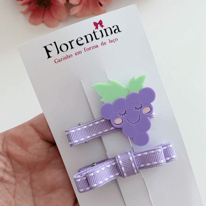 O Hair Clip Infantil Uvinha é uma linda opção para prender o cabelinho da pequena de forma divertida e criativa.