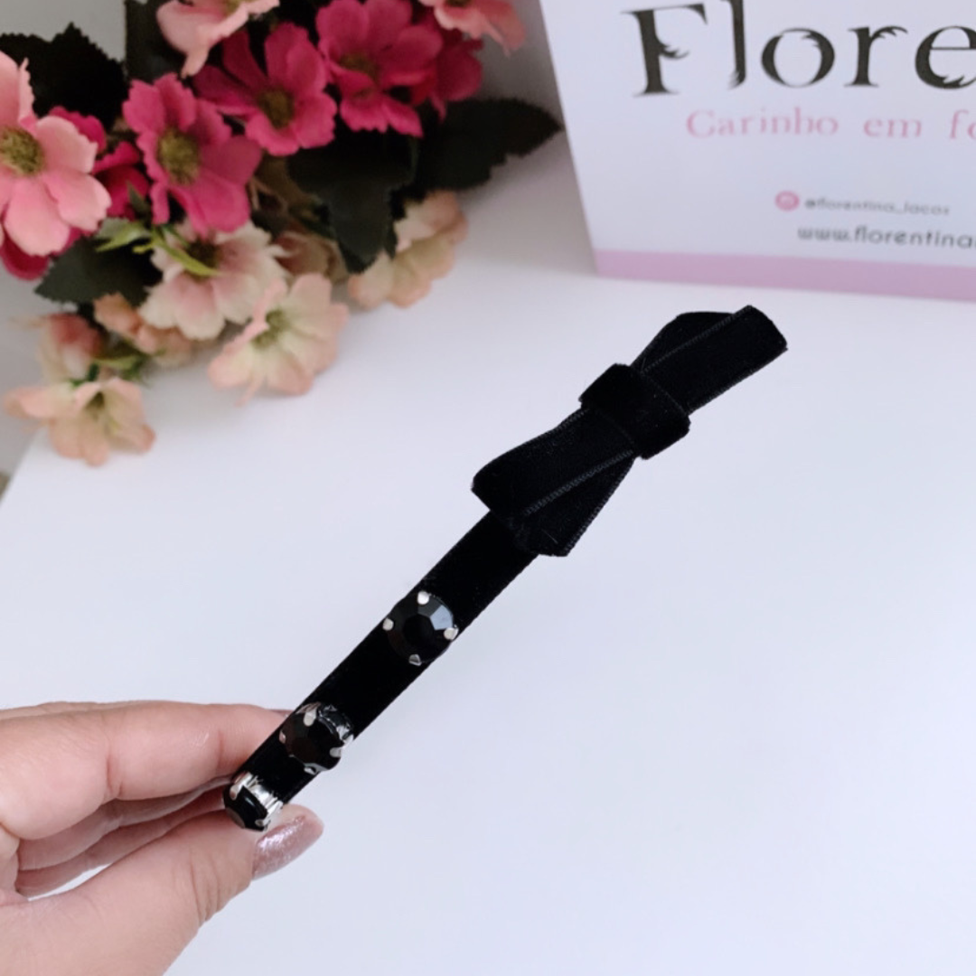 Tiara infantil de veludo, com laço e aplicação de pedraria!