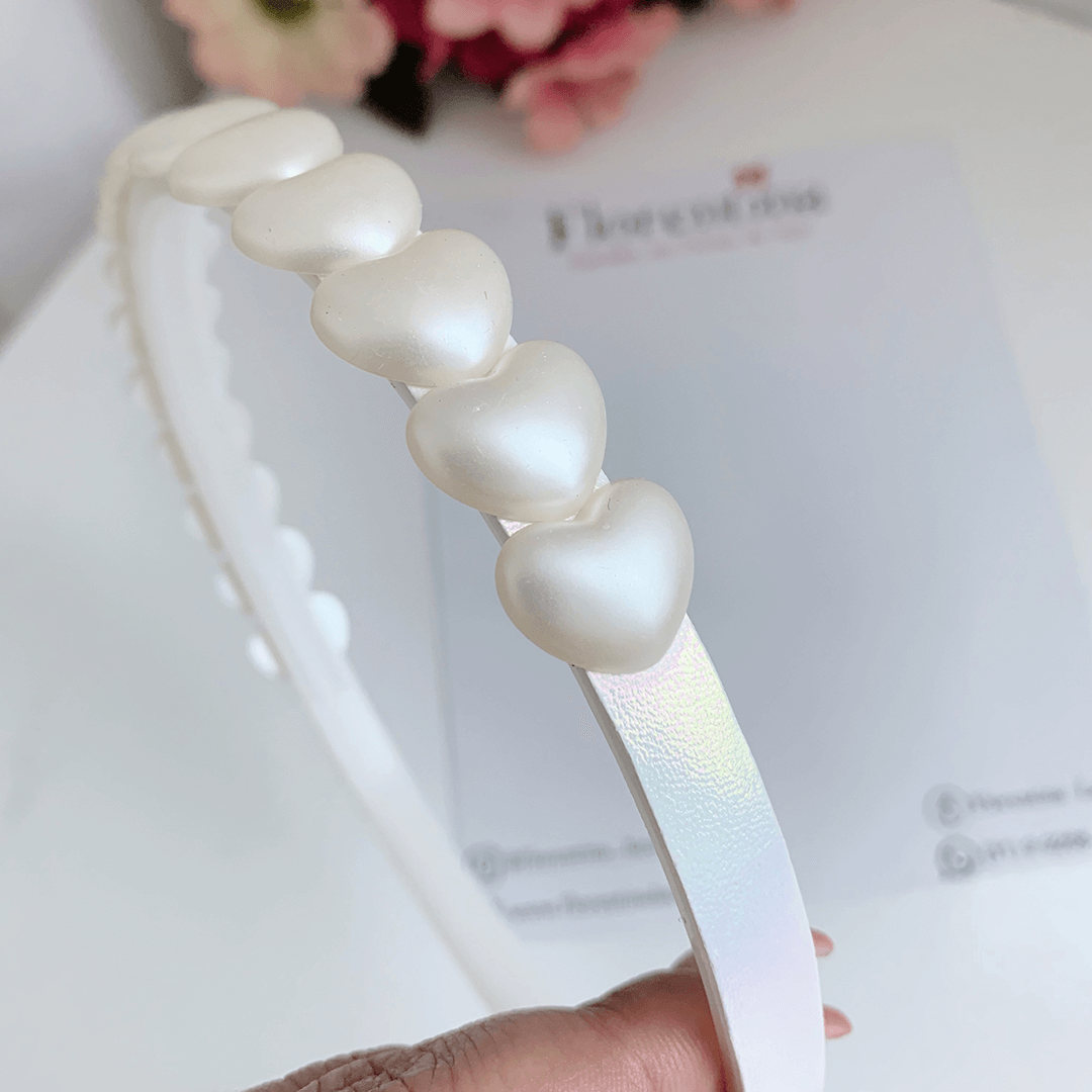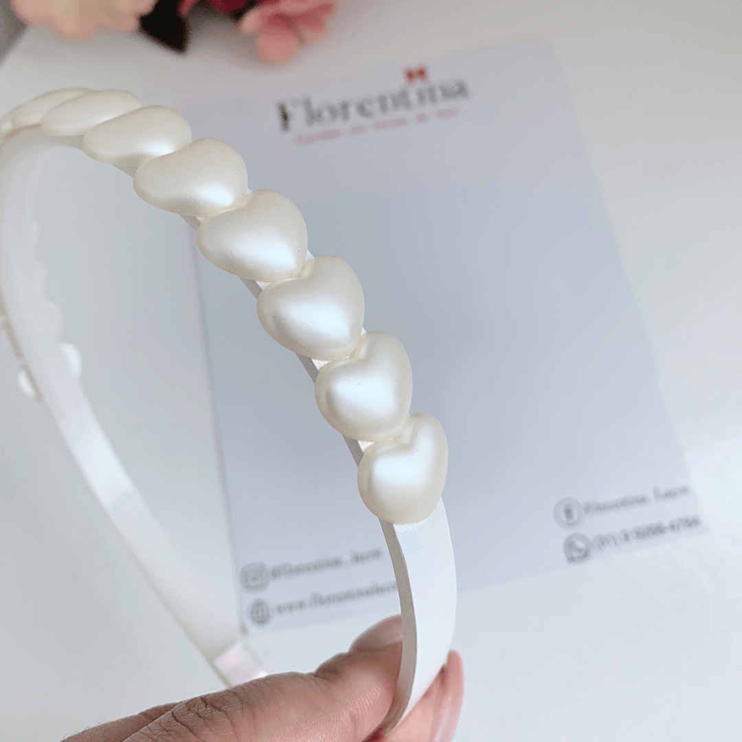 Tiara infantil com apliques de coração branco, linda opção para a pequena passar o reveillon.